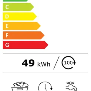 - Poraba energije za 100 ciklov Eko programa (EU 2017/1369): 49