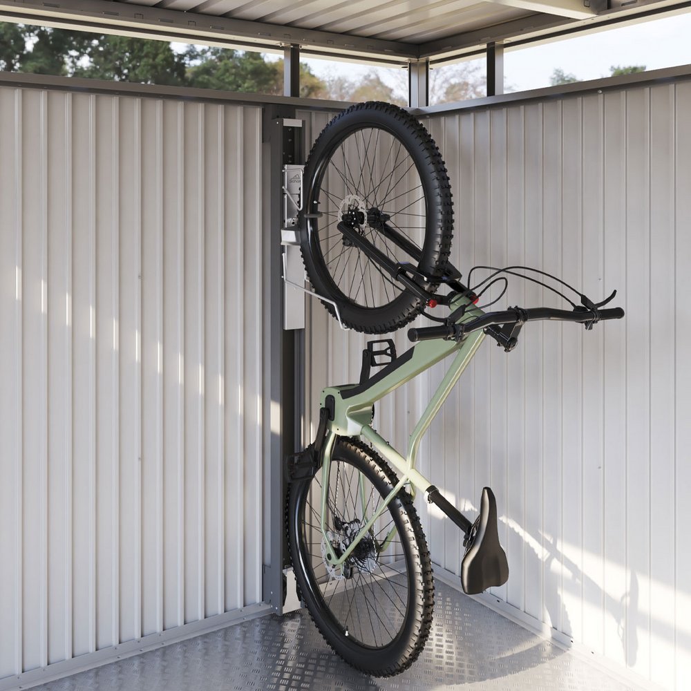 Od e-gorskih koles do dirkalnih koles – Biohort BikeLift® dvigne vsako kolo navpično navzgor po steni, kot samo sebe. To prihrani prostor in je enostavno. Zataknite kolo, pritisnite in BikeLift® bo povlekel vsako kolo, ki tehta do 30 kg.