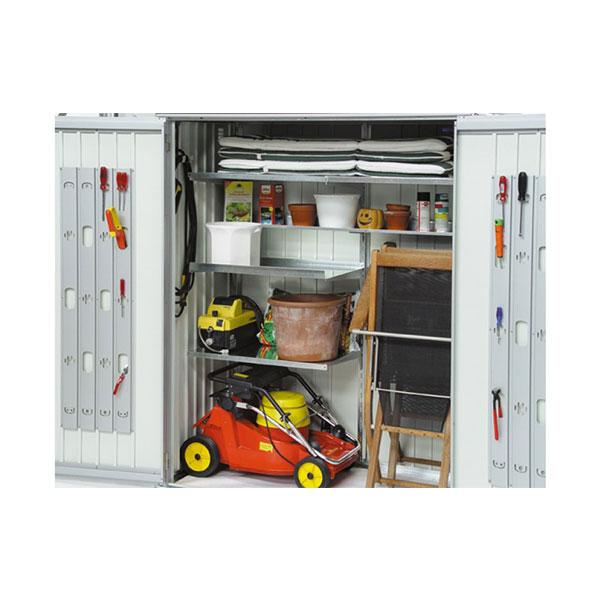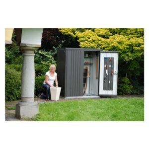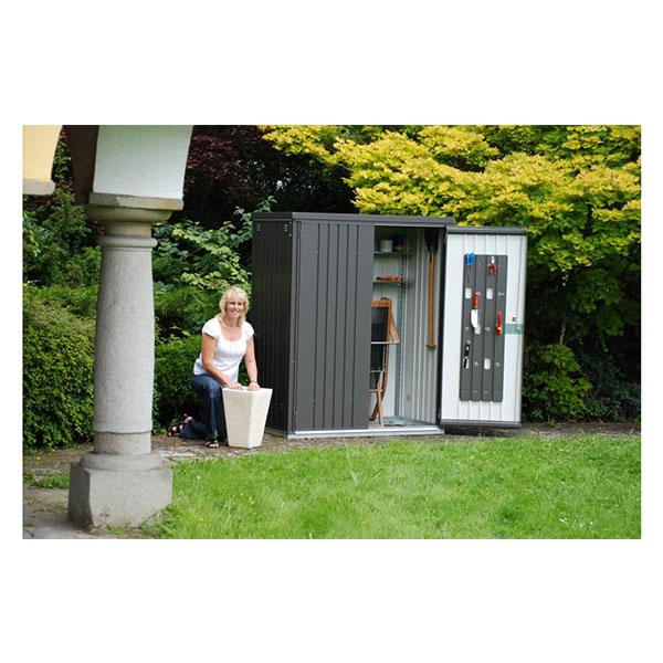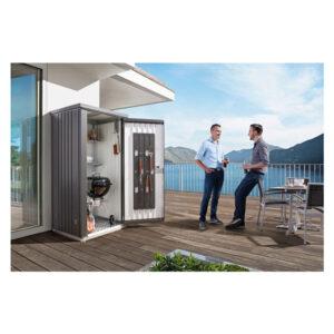 Kjer je prostora malo, kaže svoj razred. Na vrtu, na terasi, v garaži ali na balkonu ščiti in organizira, ne da bi vam omejeval bivalni prostor. Z omarico za opremo Biohort lahko shranite vrtno orodje, žar, vrtno pohištvo itd. Odstranite vodoodporno in krajo. Zahvaljujoč kompaktni velikosti in elegantni zasnovi se harmonično prilega svoji lokaciji.