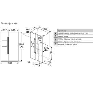 - Dispenzer za led in vodo: s pritiskom na gumb nalije hladno vodo ali pripravi kocke ledu.