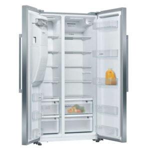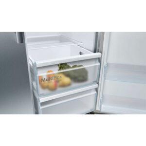 Side-by-side NoFrost hladilnik z zamrzovalnikom z notranjo elektroniko: opremljen je z modernim zaslonom na vratih, prihrani vam odtaljevanje.