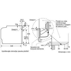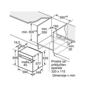 - Dimenzije niše (VxšxG): 585 mm – 595 mm x 560 mm – 568 mm x 550 mm