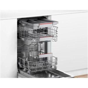 Prostor za pribor in majhne kuhinjske pripomočke v VarioPredalu. Po zaslugi izvlečnega VarioPredala, ki omogoča še tretjo raven za nalaganje posode, so pomivalni stroji ActiveWater še bolj priročni. To je idealno mesto za pribor in majhne kuhinjske pripomočke, kot so zajemalke ali metlice za sneg. Pri nalaganju posode poskrbi za večjo priročnost in zagotovi več prostora v notranjosti pomivalnega stroja.