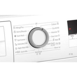 • Posebni programi: Alergije Plus, Temno perilo, Srajce/Bluze, Mešano tiho/nočno pranje, šport/Fitness, Hitro/Mešano, izpiranje, Izčrpavanje/Ožemanje, Ekstra kratek 15’/30′, občutljivo/svila, volna/ročno pranje