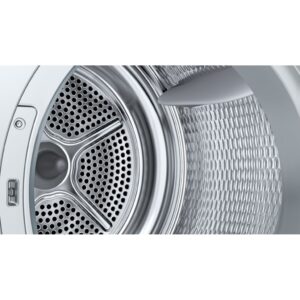 Bosch sušilni stroj nudi zmogljivost sušenja 9 kg in spada v energijski razred A+++. Ima samočistilni kondenzator, ki se med postopkom sušenja štirikrat samodejno očisti in s tem varuje oblačila ter poskrbi za najvišjo energetsko učinkovitost. Inovativne stranske stene AntiVibration nudijo večjo stabilnost za zmanjšanje vibracij, kar posledično zmanjša glasnost. Stroj lahko tudi napolnite samo do polovice, čemur se bo program sušenja optimiziral. Iron Assist program uporablja parno meglico za glajenje sušenega perila, da postane likanje lažje ali celo nepotrebno. Zahvaljujoč rahlo nagnjenemu ekranu je upravljanje še bolj dostopno.