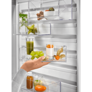 Vrhunski izgled hladilnika z zamrzovalnikom s čistimi linijami in povsem ravno izvedbo popolno dopolni sodobno kuhinjo. Tako lahko uživate v čudovito enovitem zaključku.