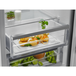 Vrhunski izgled hladilnika z zamrzovalnikom s čistimi linijami in povsem ravno izvedbo popolno dopolni sodobno kuhinjo. Tako lahko uživate v čudovito enovitem zaključku.