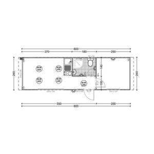 2,4 x 800 x 285 cm = 19,2 m2 … cena z ddv-jem, velja za to dimenzijo hiše.