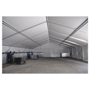 1), konstrukcija aluminijastega okvirja in strešna prevleka iz bele PVC tkanine 850 g/m2