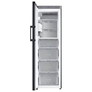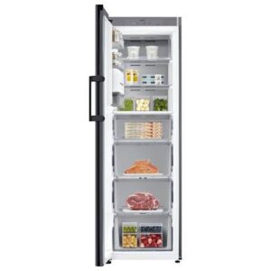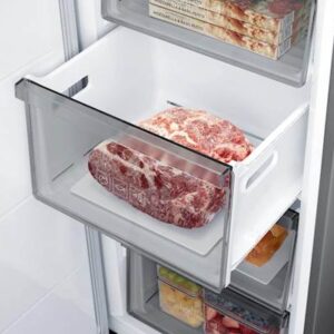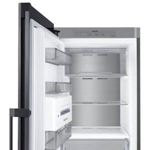 Prilagodite in kombinirajte hladilnike in zamrzovalnike tako, da ustrezajo vašemu življenskemu slogu. Preprosto uporabite modul z enojnimi al dvojnimi vrati. Če potrebujete več prostora, brezhibno združite več modulov. Dodate lahko dodaten modul z enojnimi ali dvojnimi vrati, da ustvarite idealen hladilnik. Z nadzorom nad porabo energije zmanjšajte svoj ogljični odtis in prihranite denar. SmartThings Energy zagotavlja nasvete za učinkovitejšo rabo energije. V realnem času tudi spremlja, koliko energije porabijo aparati in jo primerja s predhodnim mesecem. Če kaže, da boste presegli mesečno zastavljeno porabo energije, vas opozori. Ustrezno ohlajanje vseh živil. Hlajenje z vseh strani ohladi enakomerno od kota do kota. Hladen zrak piha iz strateško razporejenih šob in ohranja stalno temperaturo. Tako so živila shranjena pri optimalni temperaturi in ostanejo sveža dlje časa. Vzdržuje optimalno temperaturo v notranjosti , zato živila ostanejo sveža tudi ob pogostem odpiranju in zapiranju vrat. Kovinska hladilna plošča v zadnji steniohranja hlad iz zdraka in hitro pomaga obnoviti izgubo toplote. Poleg tega ima vrhunski videz in se enostavno očisti z brisanjem. Zamrznite hrano ali hitro naredite led. Funkcija Power Freeze s pritiskom na gumb samodejno nastavi temperaturo zamrzovalnika na najnižjo raven in v zamrzovalniku zagotovi hiter pih intenzivno hladnega zraka. Odlična je za zamrzovanje ali utrjevanje zamrznjene hrane in hitro pripravo ledu. Uživajte v najbolj prilagodljivem shranjevanju živil. Enostavno po potrebi spremenite zamrzovalnik v hladilnik in optimizirajte uporabo celotnega prostora. Enostavno po potrebi spremenite zamrzovalnik v hladilnik in optimizirajte uporabo celotnega prostora. Tako boste imeli vedno dovolj prostora za shranjevanje še več živil, ki so vam še posebaj pri srcu ali pa jih morate shraniti v različnih letnih časih ali za posebne priložnosti. Tanek ledomat zavzame manj prostora v zamrzovalniku, saj je vgrajen v vrata. Tako vam daje dragocen dodaten prostor za shranjevanje, saj sprosti prostor na policah. Toda ledu vam ne bo zmanjkalo, saj lahko še vedno shrani 5-krat večjo količino, kot jo lahko proizvede, za razdeljevanje ledenih kock pa je potreben preprost zasuk.